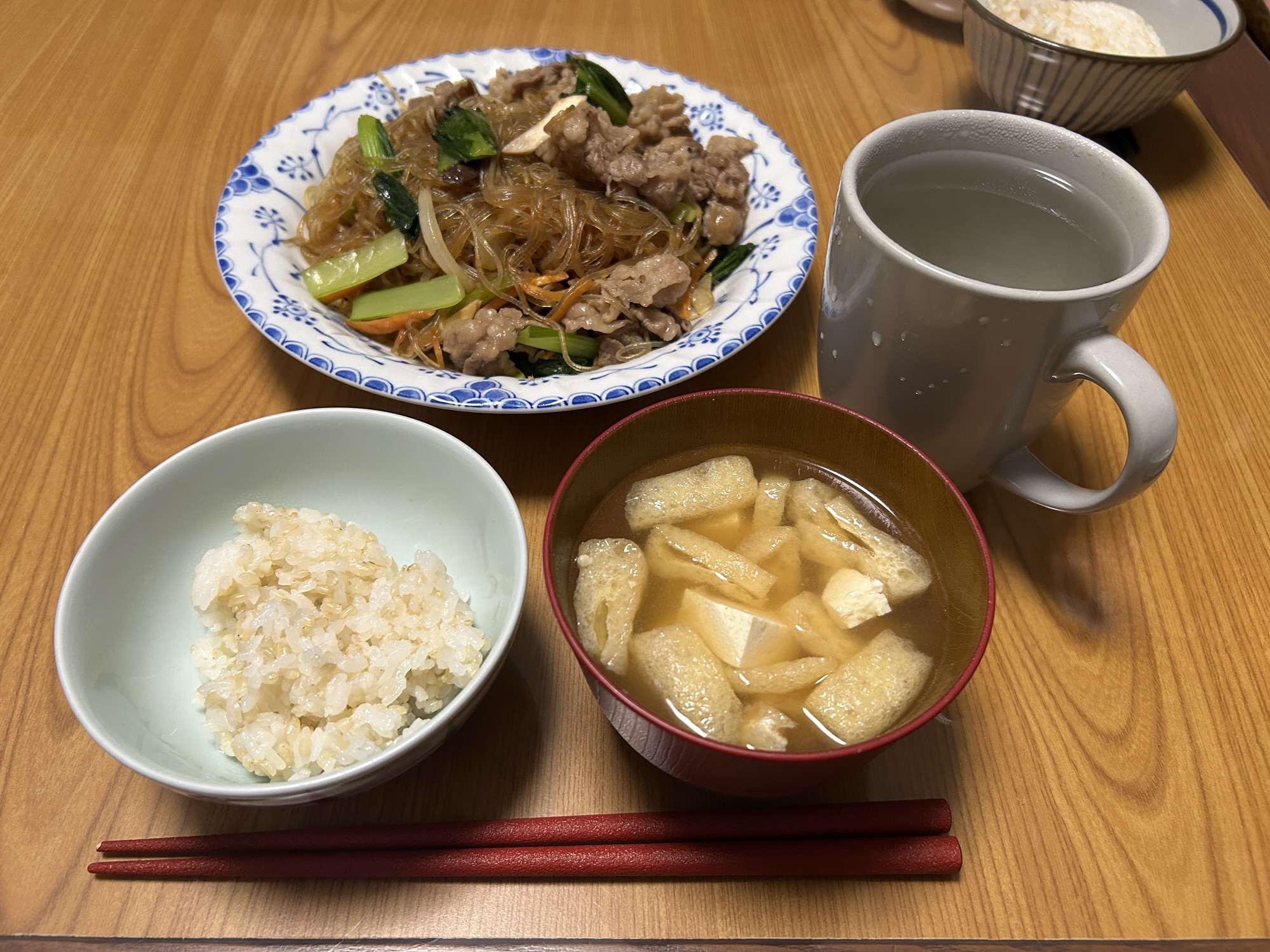 夜は、牛肉入りのチャプチェを作りました〜!YouTubeで、お気に入りの方のレシピで作りました😄✨