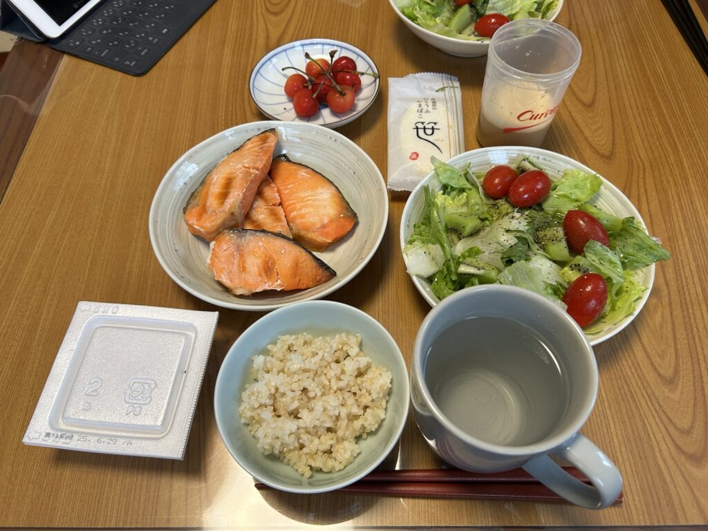 お昼はだんなさんとしっかり食べて、夜はお菓子とむき栗で終わってしまいました。久しぶりの鮭、美味しかったです!
