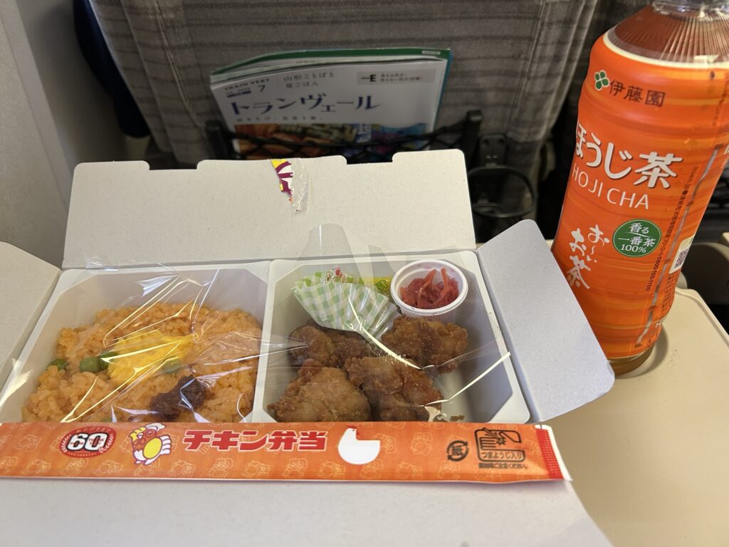 ブランチは、メチャメチャ久々のチキン弁当駅弁!ご飯に乗ってる卵焼きが半熟で、美味しかった!!そして久々の唐揚げ😍美味しいに決まってた〜📣😆✨