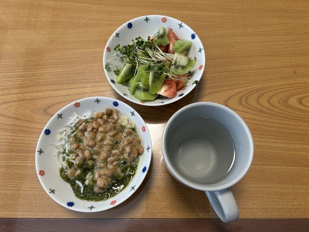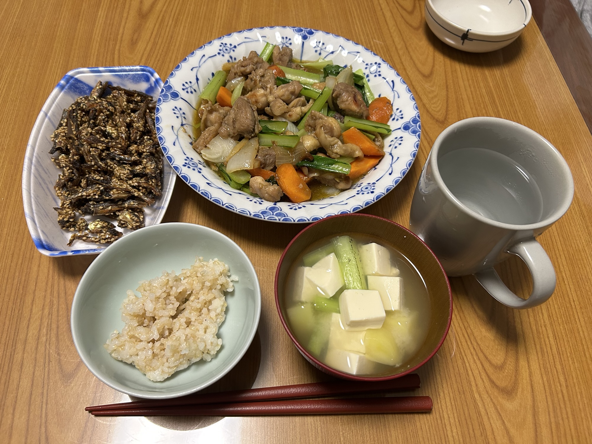 夜の味噌汁、じゃがいも、豆腐に小松菜。小松菜の歯触りなど、美味しくいただきました♪味噌も優しいお味です。