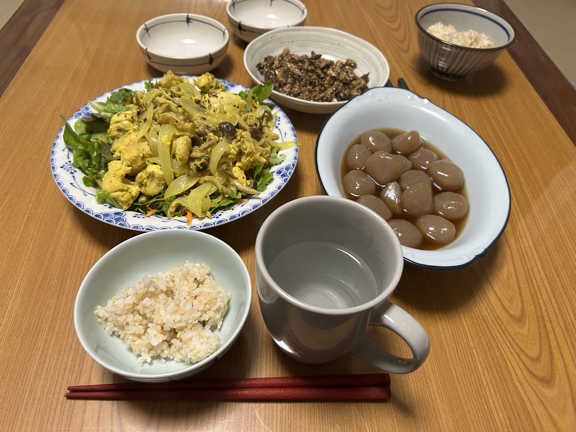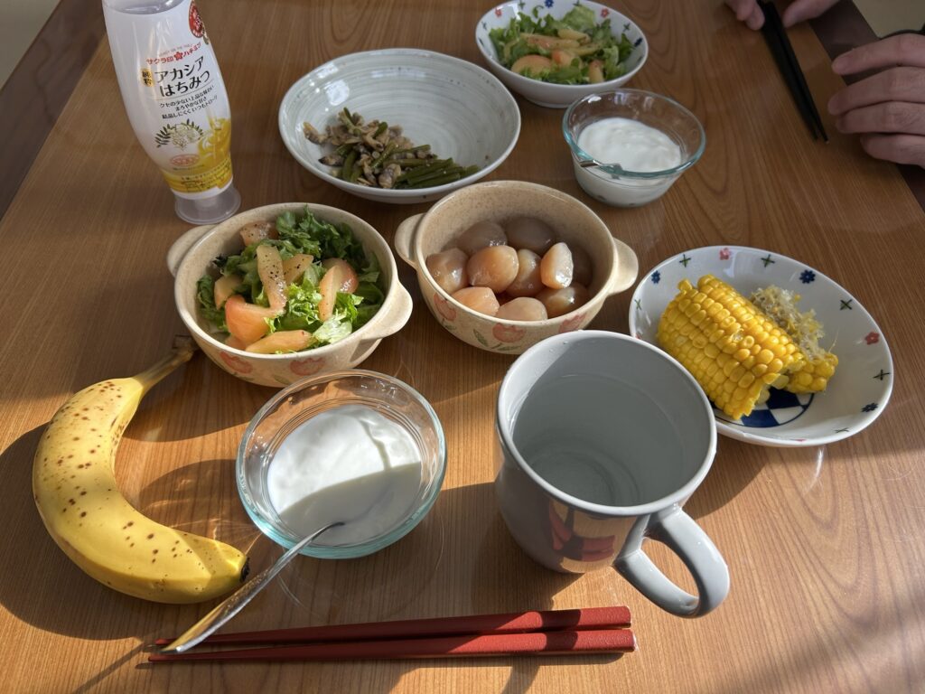 夜はヨーグルトと鶏肉&野菜で、タンドリー風チキン。味付けはカレー粉とガーリック塩で。夏はやっぱりカレーよね😆🎉