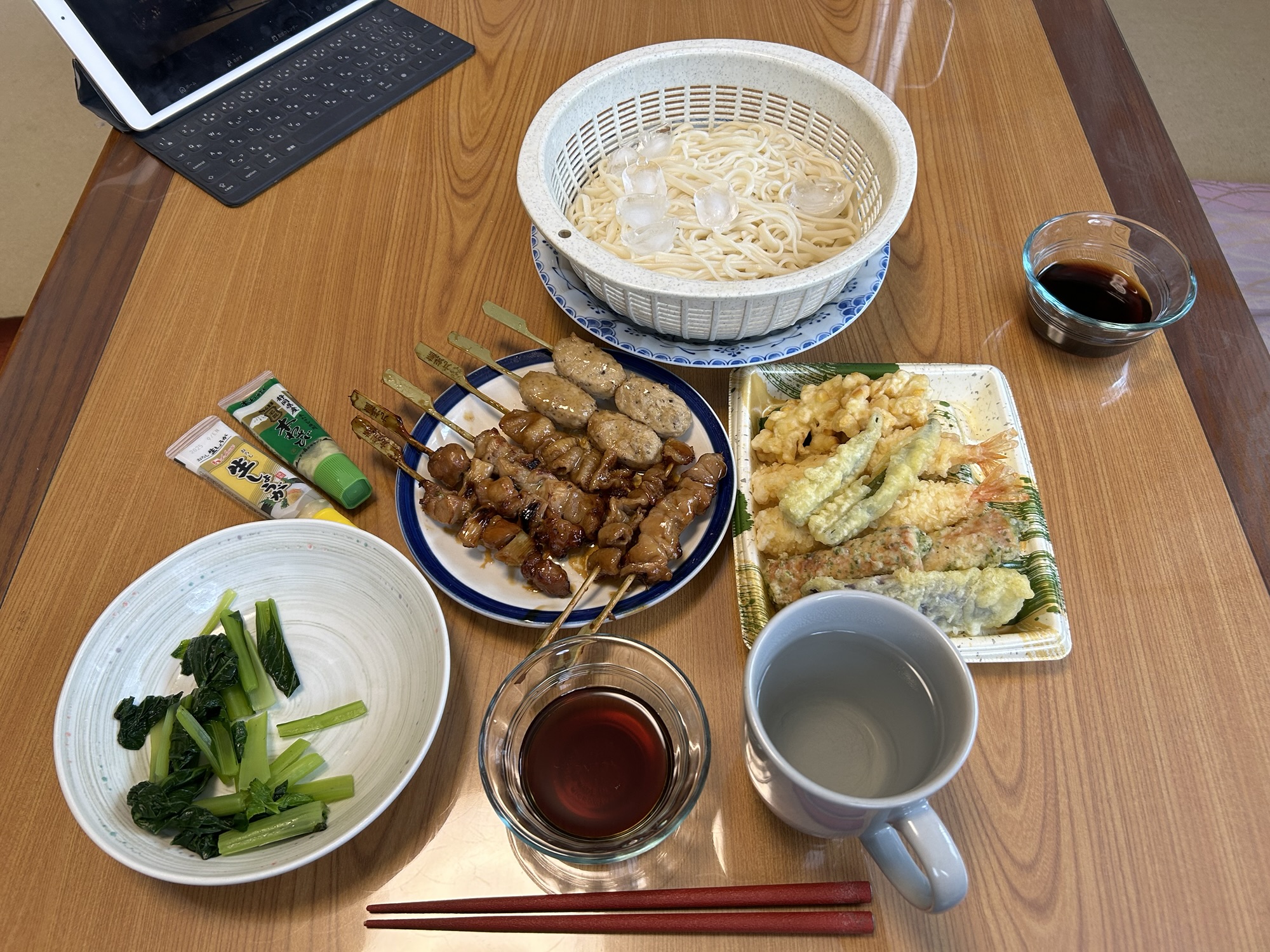 お昼は天ぷらうどん♪天ぷらは、だんなさんが買ってきてくれました😄🍤私は衣がふよふよしてるのが好きです。サイコー😆🎉