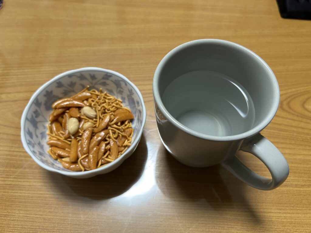 だんなさんがいない夜。ついつい柿ピーに手が伸びて。夕飯それだけで終わっなんて、言えないよ〜😆