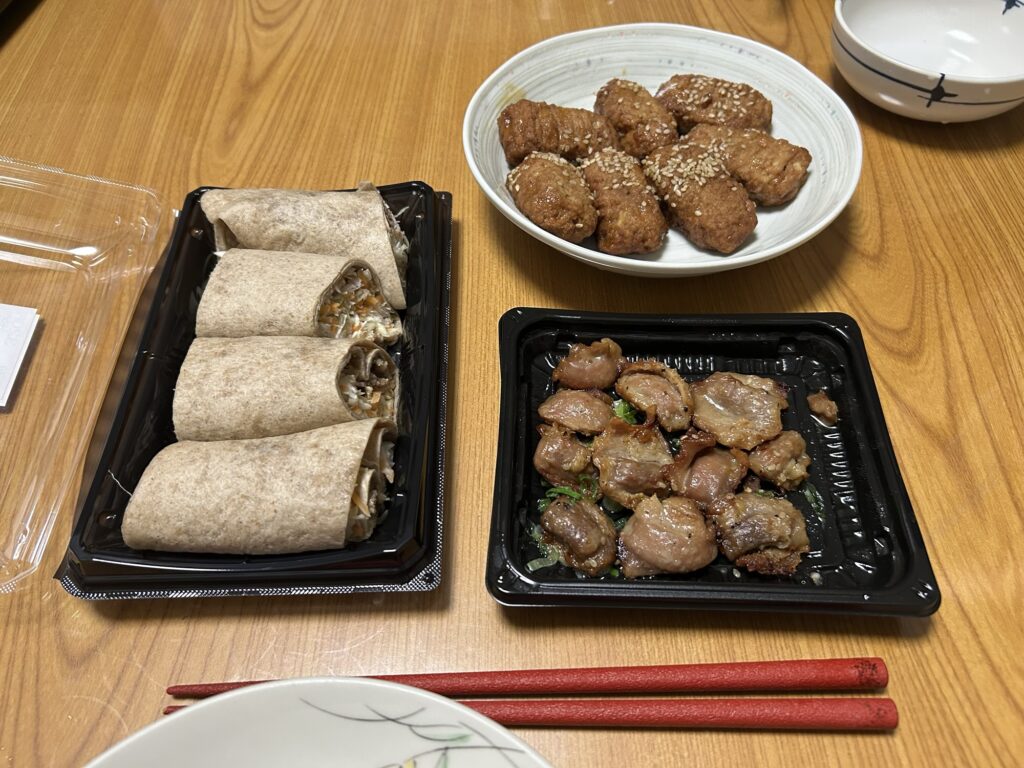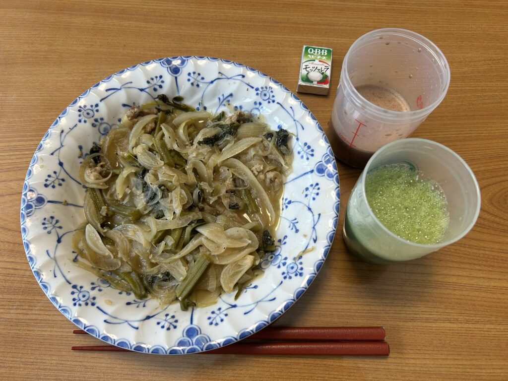 緑のお野菜少なめです。大麦若葉ドリンクと、ちゃんと野菜も食べたいところ。明日から気をつけよう!