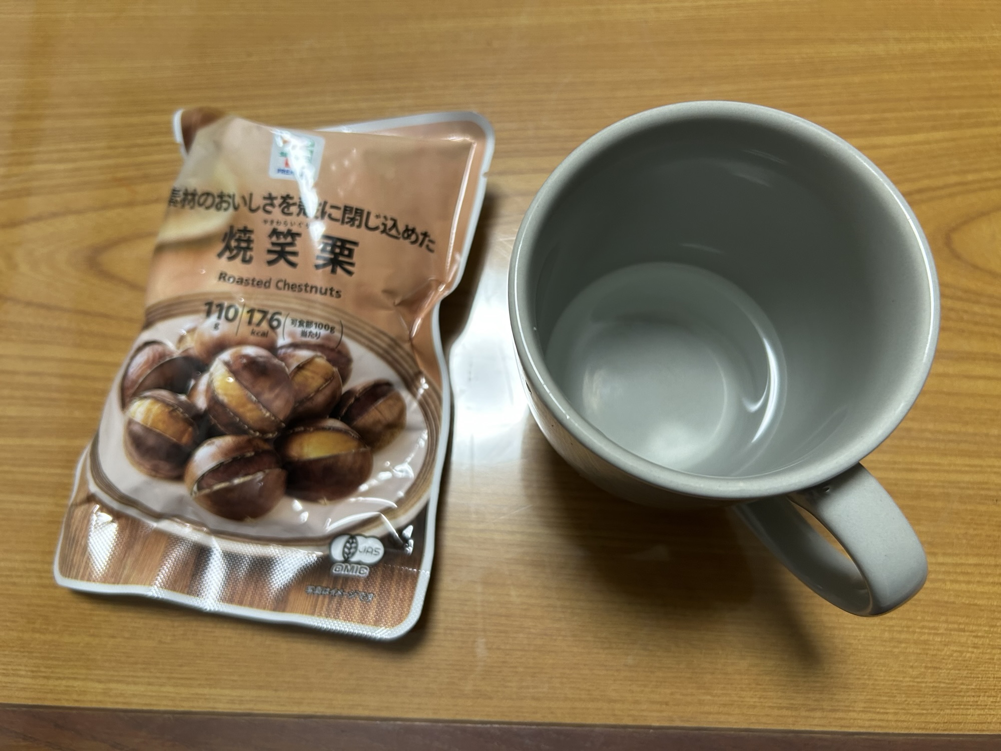 むき栗かと思ったら、剥かれてない栗でした。食べるのに時間がかかるので、ダイエットにはいいかも。